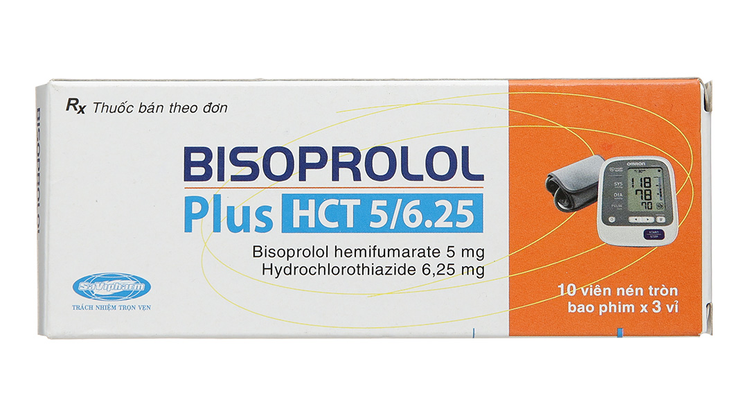 – Kết hợp bisoprolol fumarate (5,0mg) và hydrochlorothiazide (6,25mg) được chỉ định để điều trị tăng huyết áp. Là kết hợp hai tác nhân hạ huyết áp với liều uống một lần mỗi ngày : thuốc chẹn chọn lọc beta, tổng hợp (cạnh tranh chẹn thụ thể beta, của tim, bisoprolol fumarate) và một thuốc lợi tiểu nhóm benzothiadiazine (hydrochlorothiazide).