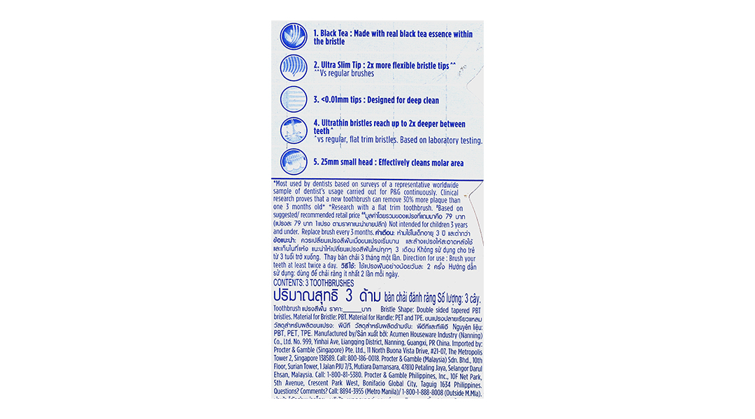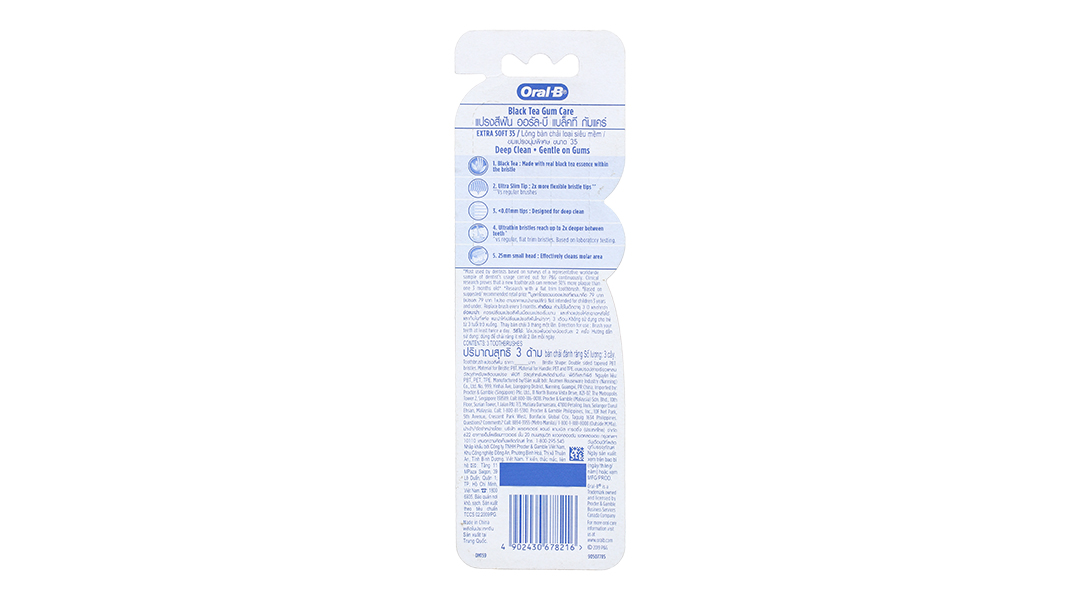 Bàn chải Oral-B trà đen vỉ 3 cây có chứa tinh chất trà đen và màu đen đặc trưng giúp hỗ trợ giúp kháng khuẩn và diệt mùi tối ưu