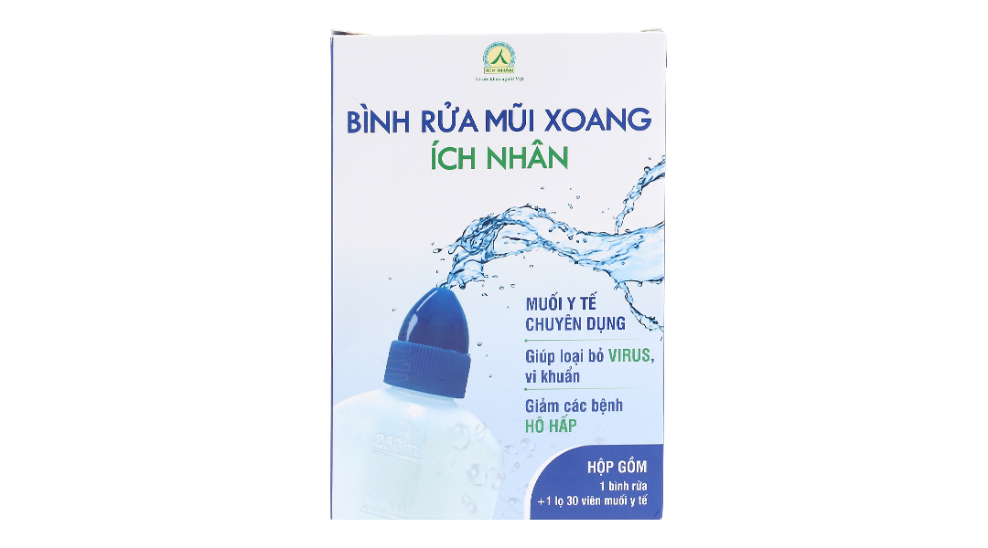 Bộ dụng cụ vệ sinh mũi Ích Nhân gồm: một bình rửa + một lọ 30 viên muối y tế.