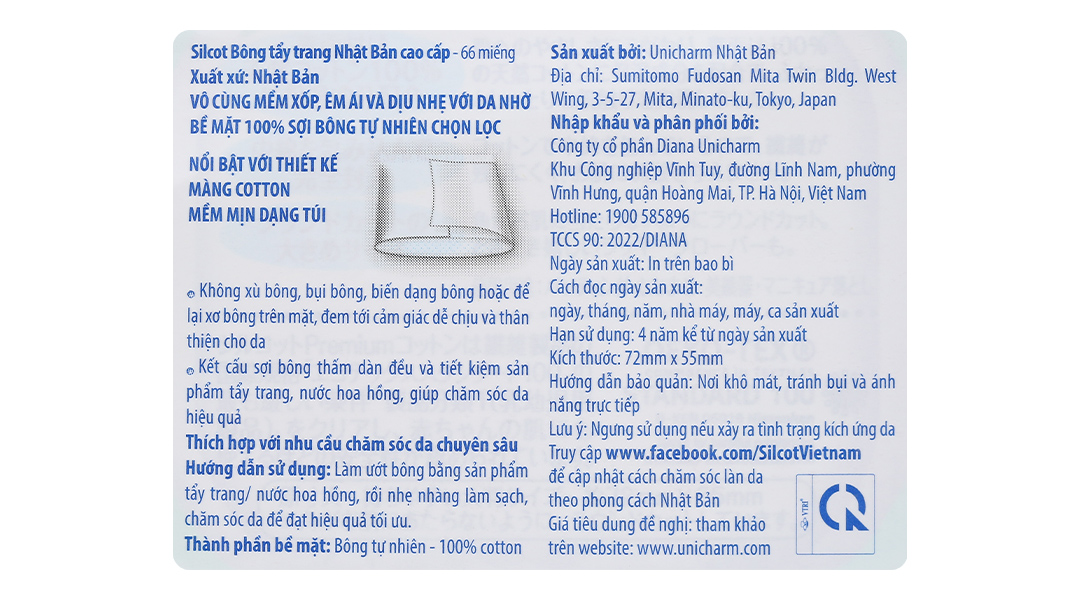 - Bông tẩy trang Silcot 66 miếng cao cấp xuất xứ từ Nhật Bản được làm từ 100% sợi bông tự nhiên chọn lọc.