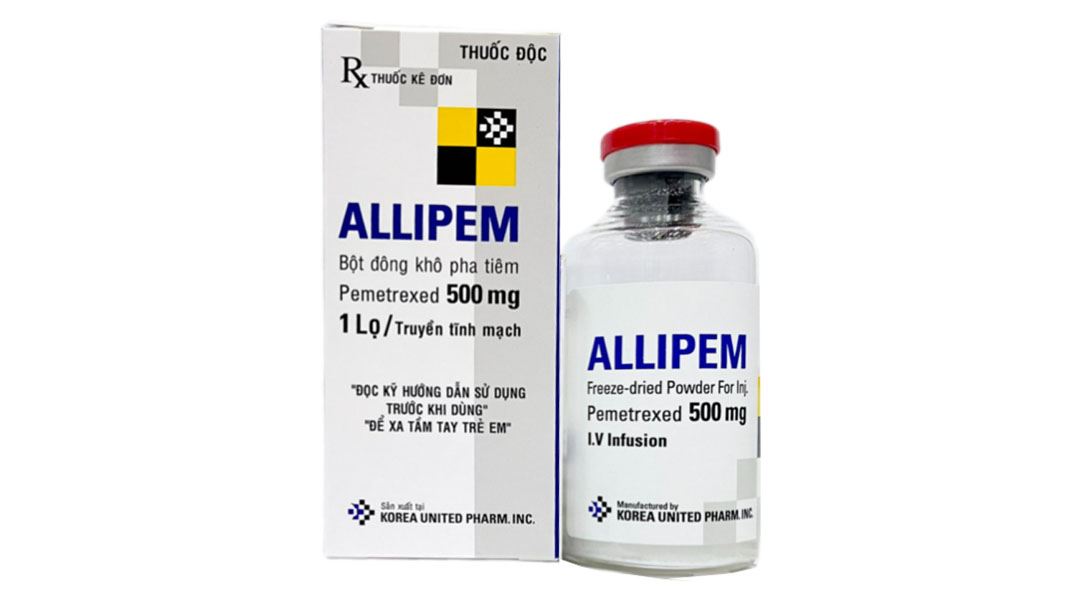 Bột pha tiêm Allipem 500mg điều trị ung thư phổi không tế bào nhỏ hộp 1 lọ 500mg