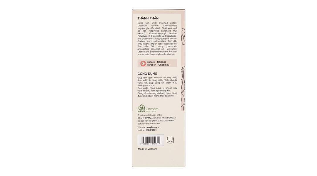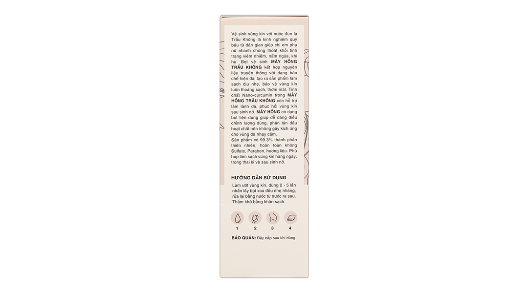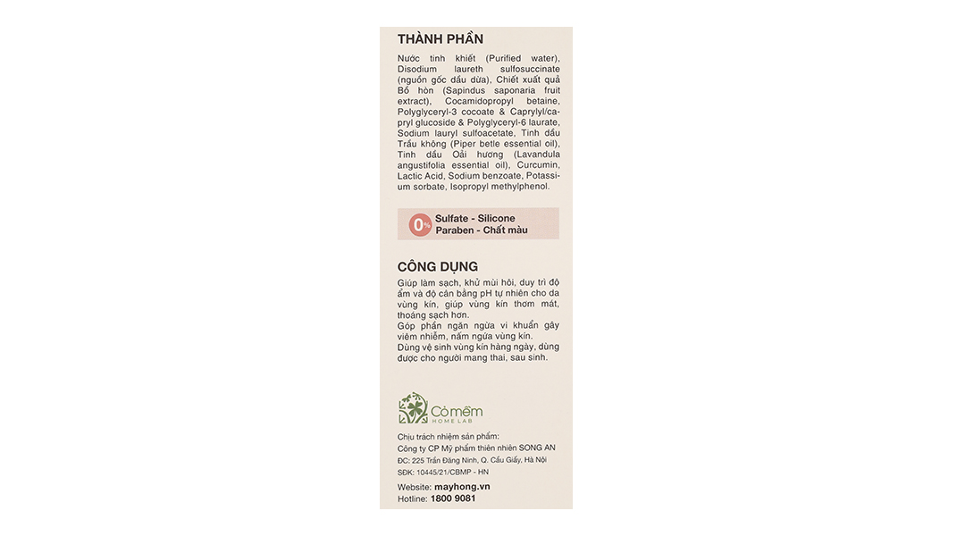 Công dụngGiúp làm sạch, khử mùi hôi, duy trì độ ẩm và độ cân bằng pH tự nhiên cho da vùng kín