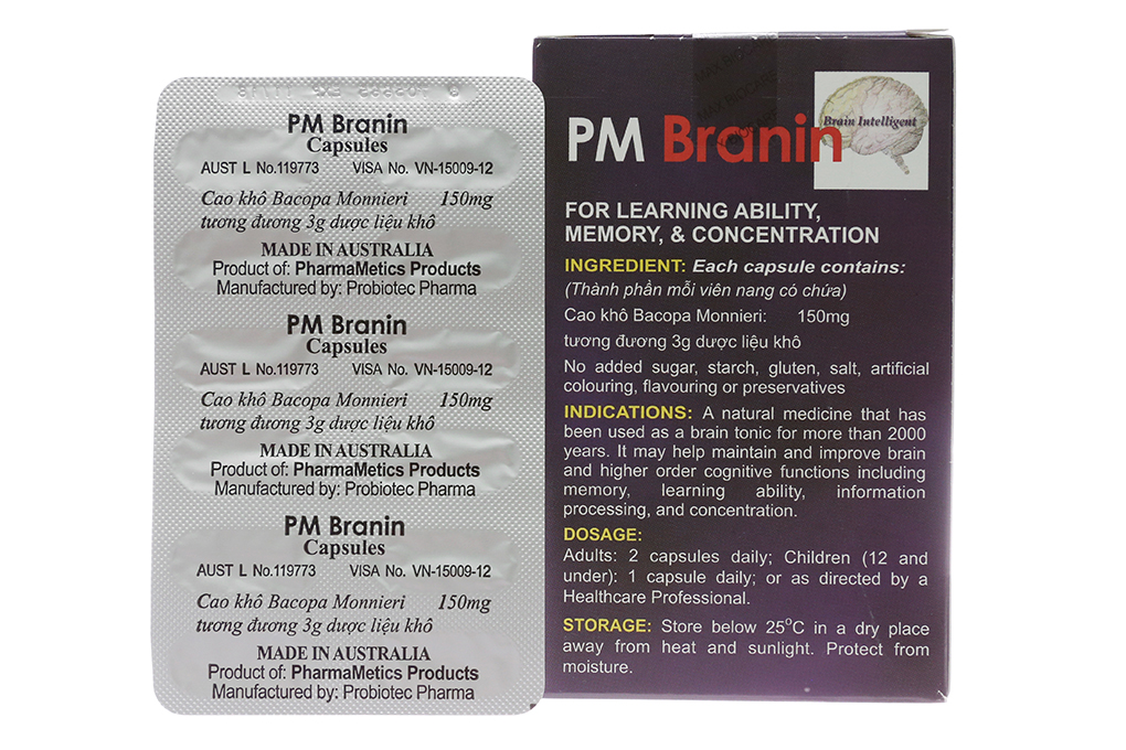 - Cao khô Bacopa Monnieri 150mg tương đương 3g dược liệu khô.