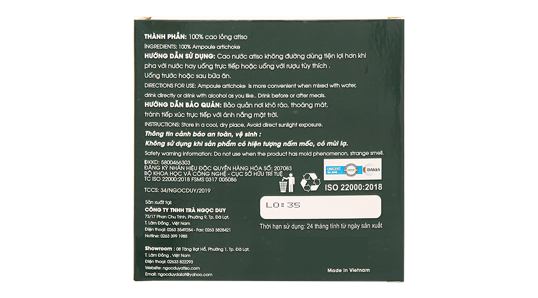 Cao nước Atisô Ngọc Duy không đường giúp bổ gan, lợi mật hộp 10 ống x 10ml