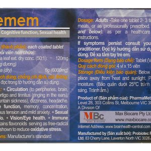 - Tá dược: Keo silica khan, magnesi stearat, talc, tinh bột ngô, lactose monohydrat.