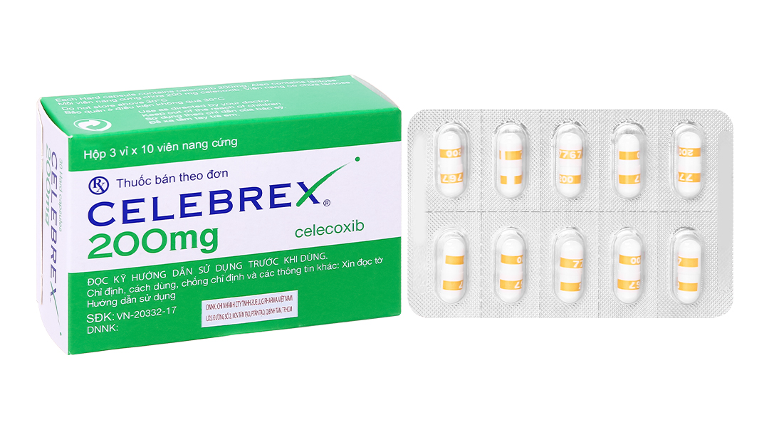 - Viên nang Celecoxib, với liều dùng đến 200mg, 2 lần/ngày có thể dùng cùng thức ăn hoặc không.