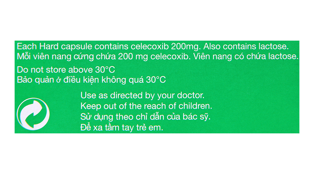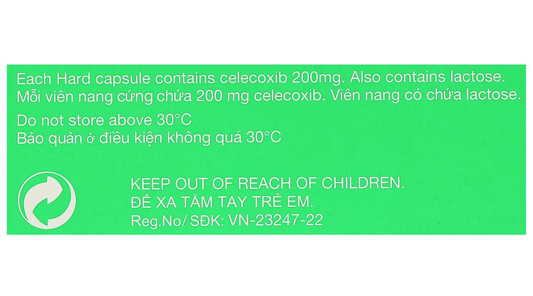 Mỗi viên nang cứng chứa 200mg celecoxib.