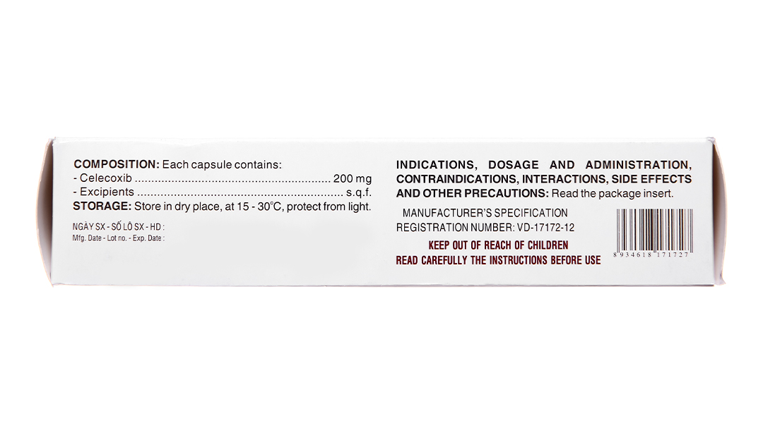 Hoạt chất: Celecoxib 200mg.
