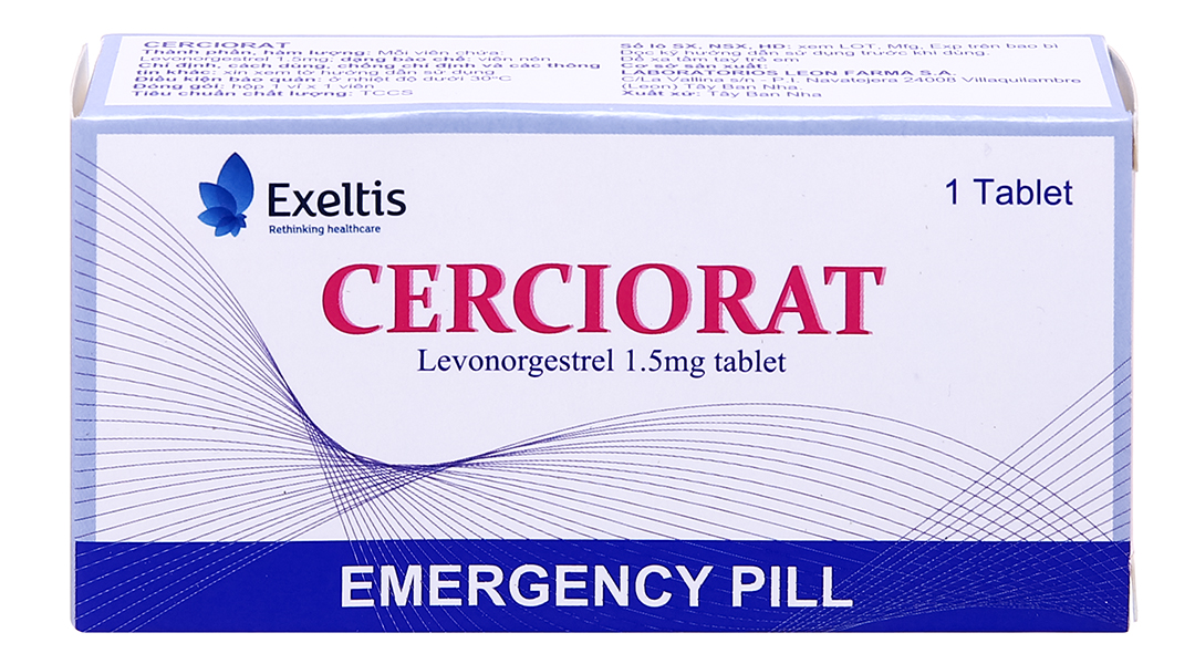 Cerciorat thuốc tránh thai khẩn cấp trong vòng 72 giờ (1 vỉ x 1 viên)