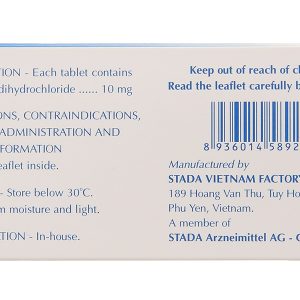 – Nồng độ đỉnh trong máu ở 0,3 microgam/ml sau 30 đến 60 phút khi uống 1 liều 10 mg.