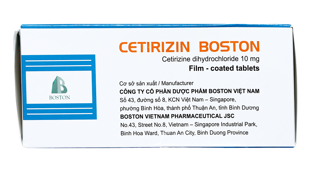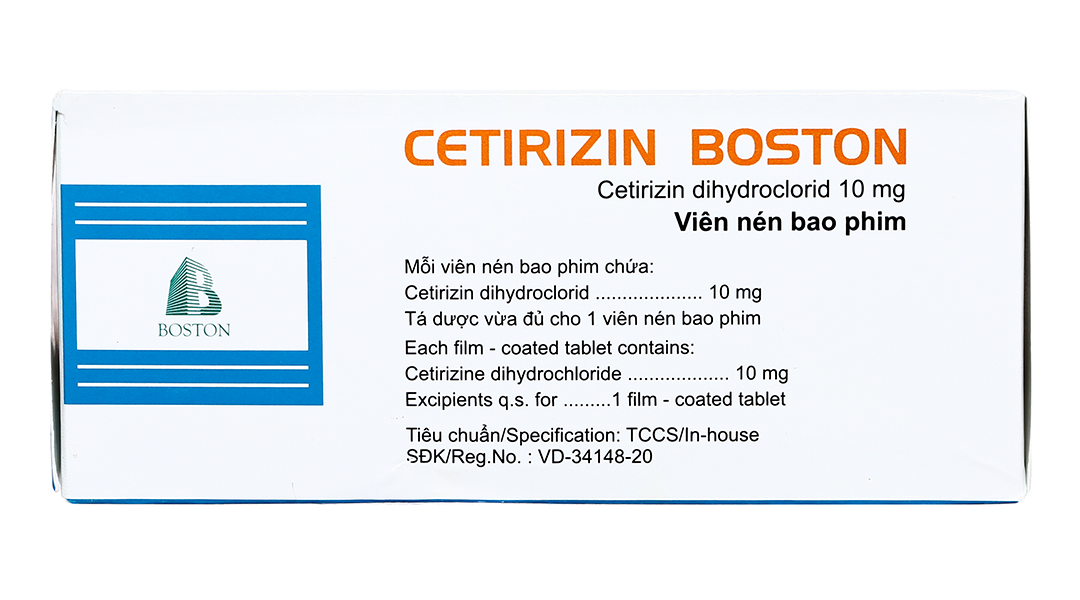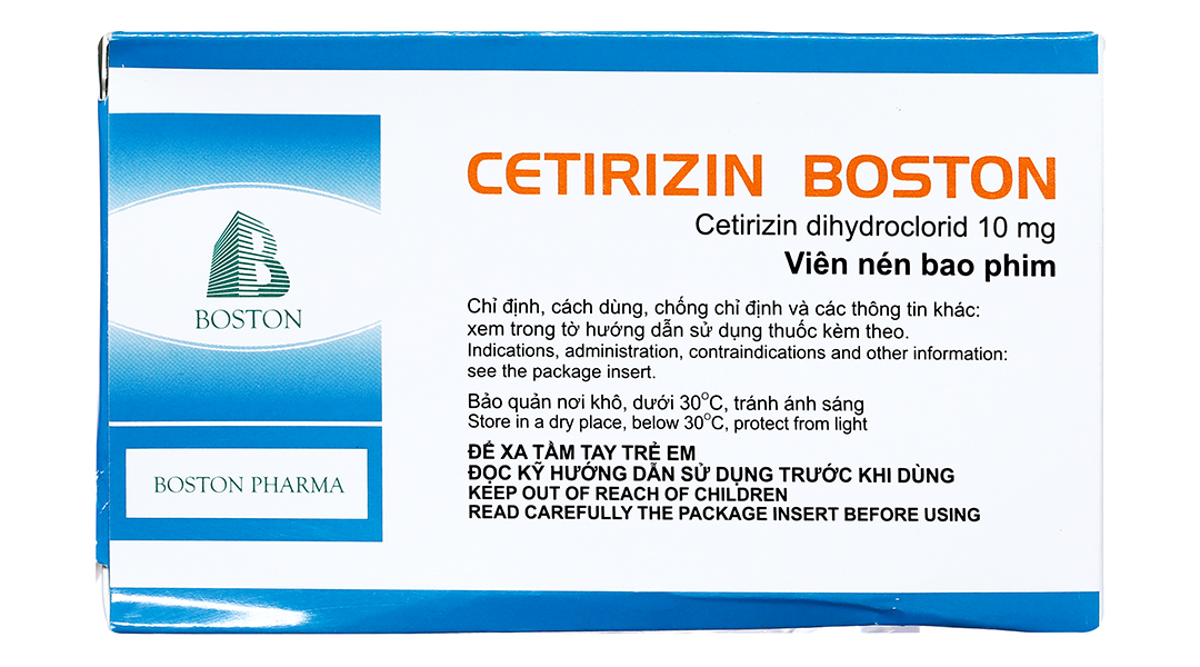 Cetirizin Boston 10mg giảm triệu chứng viêm mũi dị ứng, mày đay (10 vỉ x 10 viên)