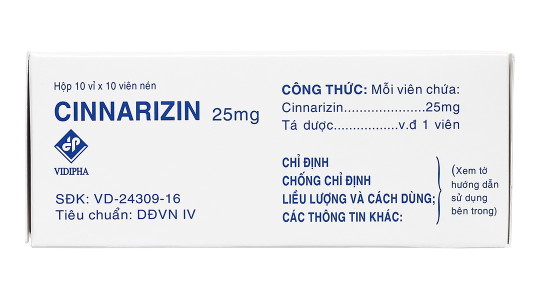 - Hoạt chất chính: Cinnarizin 25mg.