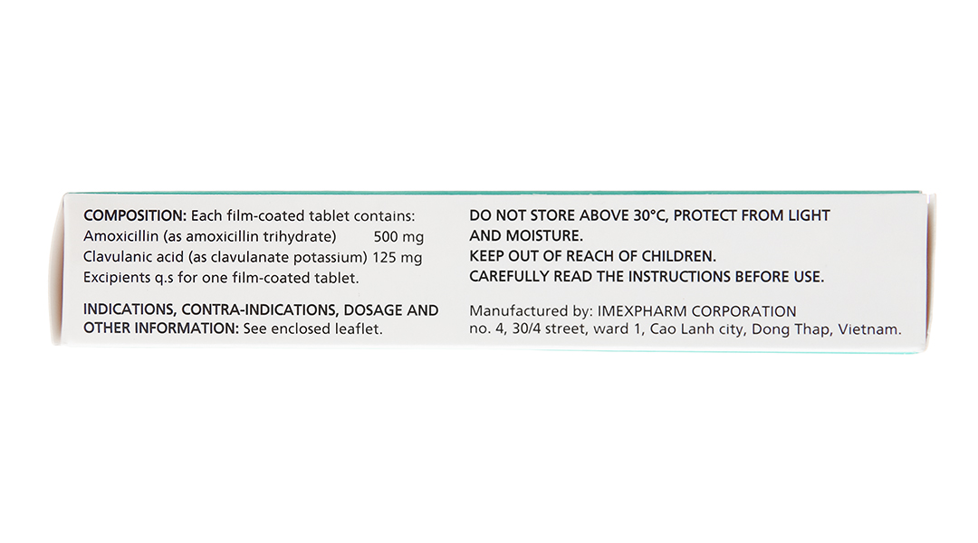 – Thận trọng khi sử dụngClaminat IMP 625 không thích hợp để điều trị các nhiễm khuẩn gây ra bởi các vi khuẩn đã giảm nhạy cảm hoặc đề kháng với các kháng sinh nhóm beta-lactam theo cơ chế không qua trung gian các enzym beta-lactamase bị ức chế bởi acid clavulanic. Không dùng thuốc để điều trị các nhiễm trùng gây ra bởi S.pneumonia đề kháng với penicilin. Thuốc có thể gây ra phản ứng quá mẫn trầm trọng, đôi khi gây tử vong ở những bệnh nhân có tiền sử dị ứng với penicilin hoặc các dị nguyên khác. Do đó, trước khi bắt đầu điều trị bằng Claminat IMP 625 cần phải điều tra kỹ tiền sử dị ứng với penicilin, cephalosporin và các dị nguyên khác ở bệnh nhân. Nếu phản ứng dị ứng xảy ra trong khi điều trị bằng Claminat IMP 625, phải ngừng thuốc và có các biện pháp xử trí thích hợp. Trong quá trình điều trị với Claminat IMP 625, nếu đã xác định được vi khuẩn gây bệnh nhạy cảm với amoxicilin đơn độc (qua kết quả kháng sinh đồ) nên chuyển sang dùng amoxicilin đơn độc. Thành phần amoxicilin trong thuốc có thể gây mẩn đỏ kèm sốt nổi hạch. Acid clavulanic gây tăng nguy cơ ứ mật trong gan, vì vậy thận trọng khi dùng thuốc cho người già, người bệnh có tiền sử vàng da không do amoxicilin và acid clavulanic, bệnh nhân rối loạn chức năng gan. Acid clavulanic trong thuốc cũng có thể gây ra sự gắn kết không đặc hiệu của IgG và albumin trên màng hồng cầu dẫn đến phản ứng dương tính giả trong nghiệm pháp Coombs. Các dấu hiệu và triệu chứng vàng da ứ mật tuy ít xảy ra khi dùng thuốc nhưng có thể nặng. Tuy nhiên, những triệu chứng đó thường hồi phục được và sẽ hết sau 6 tuần ngừng điều trị. Tá dược sepifilm trong thuốc có thể gây ra các phản ứng dị ứng trên bệnh nhân. Người suy thận trung bình hay nặng cần chú ý điều chỉnh liều dùng (xem phần LIỀU LƯỢNG – CÁCH DÙNG). Co giật có thể xảy ra ở những bệnh nhân suy giảm chức năng thận hoặc dùng thuốc với liều cao. Dùng thuốc kéo dài, đôi khi làm phát triển các vi khuẩn kháng thuốc. Do đó, cần theo dõi cẩn thận và có biện pháp điều trị thích hợp nếu có bội nhiễm xảy ra. Phải định kỳ kiểm tra chỉ số huyết học, chức năng gan, thận trọng suốt quá trình điều trị. Cần có chẩn đoán phân biệt để phát hiện các trường hợp tiêu chảy do C.difficile và viêm đại tràng có màng giả. Ở bệnh nhân tăng bạch cầu đơn nhân nhiễm khuẩn, có nguy cơ phát ban cao khi dùng Claminat IMP 625. Vì vậy, tránh dùng thuốc nếu nghi ngờ có thể làm tăng bạch cầu đơn nhân nhiễm khuẩn ở những bệnh nhân từng xuất hiện ban đỏ đa dạng do dùng thuốc có chứa thành phần amoxicilin. Khi bắt đầu điều trị với thuốc, mụn mủ kèm theo sốt ban đỏ xuất hiện có thể là những biểu hiện của hội chứng ngoại ban mụn mủ toàn thân cấp tính (AGEP). Nếu xuất hiện các biểu hiện này, nên cho bệnh nhân ngừng thuốc và chống chỉ định với bất kỳ chế phẩm nào có chứa amoxicilin. Tiểu ít là một nguy cơ để thuốc kết tinh. Vì vậy cần khuyến cáo bệnh nhân uống nhiều nước trong thời gian dùng thuốc, ở bệnh nhân có đặt ống thông tiểu, cần kiểm tra thường xuyên tình trạng ống thông tiểu. Trong thời gian dùng thuốc, nếu bệnh nhân cần xét nghiệm glucose trong nước tiểu nên sử dụng phương pháp dùng enzym glucose oxidase. Các phương pháp phi enzym có thể đưa ra kết quả dương tính giả. – Thai kỳ và cho con búPhụ nữ mang thai: chưa có các nghiên cứu đầy đủ và có kiểm soát về việc sử dụng thuốc trên phụ nữ mang thai do đó tránh sử dụng thuốc trong 3 tháng đầu của thai kỳ, trừ trường hợp cần thiết do bác sĩ chỉ định. Phụ nữ cho con bú: một lượng nhỏ thuốc có thể khuếch tán vào sữa mẹ gây nguy cơ mẫn cảm cho trẻ bú mẹ. Do đó, chỉ sử dụng thuốc cho phụ nữ cho con bú khi thật cần thiết. – Khả năng lái xe và vận hành máy mócTác động của thuốc khi lái xe và vận hành máy móc: một số tác dụng không mong muốn của thuốc như nhức đầu, hoa mắt, sốt, mệt mỏi… có thể làm giảm khả năng tập trung và phản ứng của bệnh nhân, do đó không nên sử dụng thuốc khi đang lái xe và vận hành máy móc. – Tương tác thuốcThuốc có thể gây kéo dài thời gian chảy máu và đông máu. Vì vậy, cần theo dõi cẩn thận người bệnh đang điều trị bằng thuốc chống đông máu. Điều chỉnh liều thuốc chống đông máu nếu cần. Thuốc có thể làm giảm hiệu quả của các thuốc tránh thai uống, do đó cần thông báo trước cho bệnh nhân. Nifedipin làm tăng hấp thu amoxicilin. Bệnh nhân tăng acid uric máu khi dùng alopurinol cùng với amoxicilin sẽ làm tăng khả năng phát ban của amoxicilin. Các chất kìm khuẩn như: acid fusidic, cloramphenicol, tetracyclin có thể làm giảm tác dụng diệt khuẩn của amoxicilin. Amoxicilin làm giảm bài tiết methotrexat, từ đó làm tăng độc tính trên đường tiêu hóa và hệ tạo máu. Probenecid làm giảm sự đào thải của amoxicilin nhưng không ảnh hưởng đến sự đ