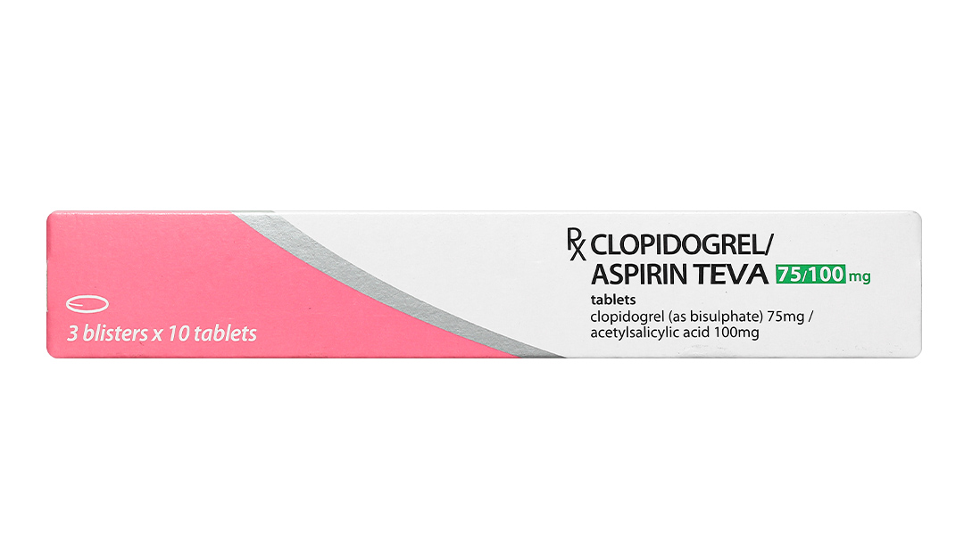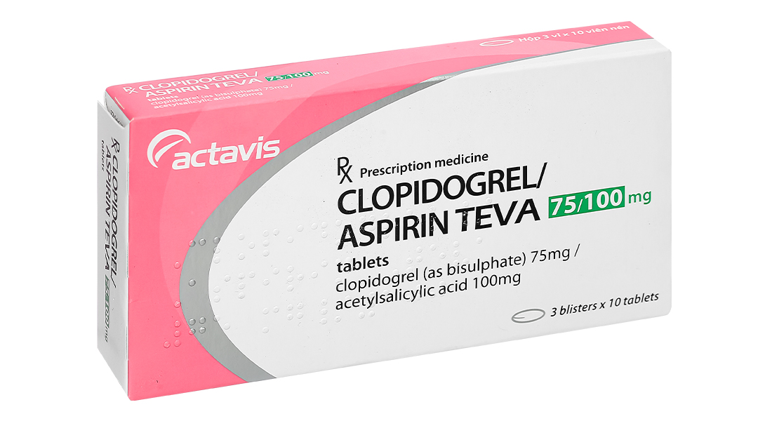 Clopidogrel/Aspirin TEVA 75/100mg trị bệnh mạch vành, nhồi máu cơ tim (3 vỉ x 10 viên)