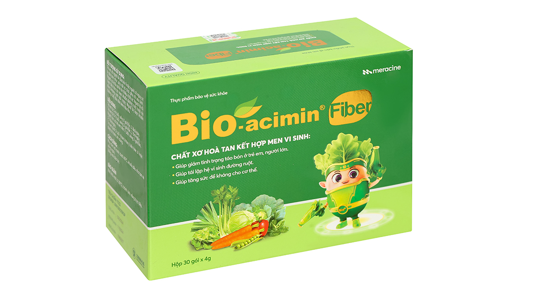 - Với công thức chứa chất xơ hòa tan Châu Âu Synergy 1 hàm lượng cao nguồn gốc từ tự nhiên giúp bổ sung chất xơ cho những người có chế độ ăn thiếu chất xơ, Bio-acimin Fiber hỗ trợ giúp trẻ đi ngoài đều đặn và dễ dàng hơn, làm giảm tình trạng táo bón ở trẻ em và người lớn. Bên cạnh đó, Bio-acimin Fiber bổ sung vi khuẩn có lợi giúp cân bằng hệ vi sinh đường ruột, tăng hấp thu canxi và tăng sức đề kháng cho cơ thể; hỗ trợ ổn định hệ tiêu hóa sau những rối loạn do viêm ruột hoặc dùng kháng sinh dài ngày.