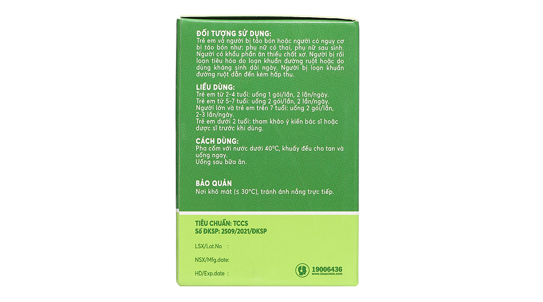 Mỗi gói cốm Bio-acimin Fiber chứa: