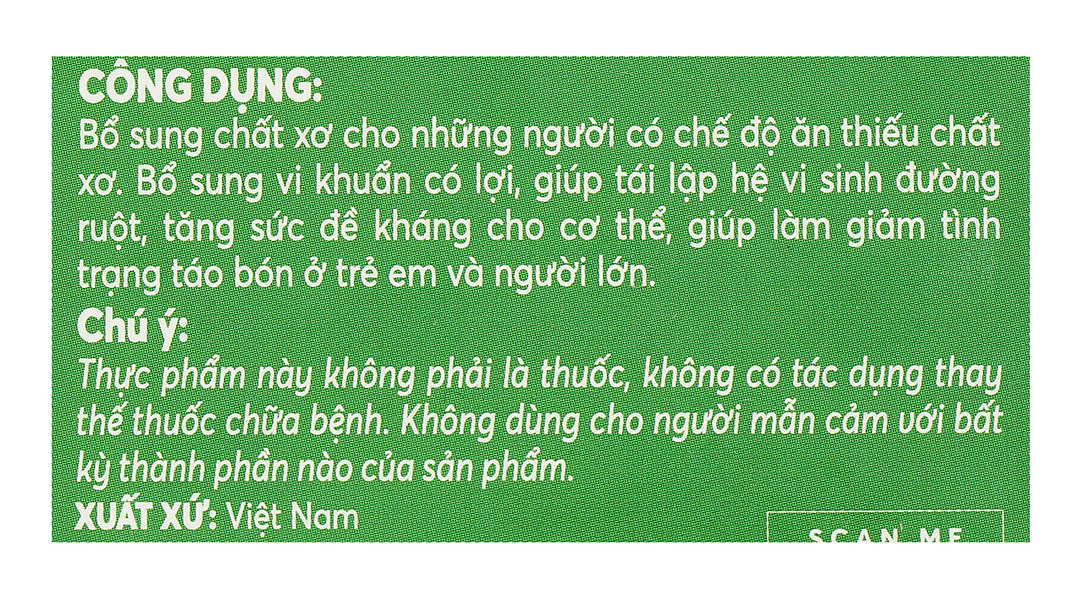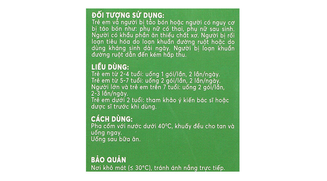 - Bổ sung vi khuẩn có lợi, giúp tái lập hệ vi sinh đường ruột, tăng sức đề kháng cho cơ thể, giúp làm giảm tình trạng táo bón ở trẻ em và người lớn.