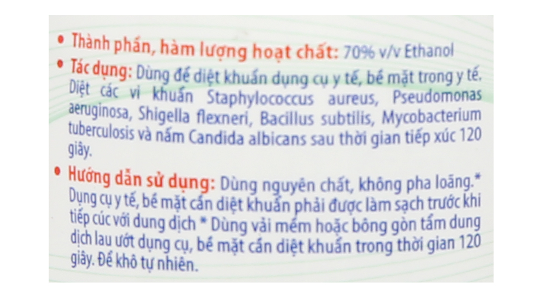 Cồn dùng để diệt khuẩn dụng cụ y tế, bề mặt trong y tế.