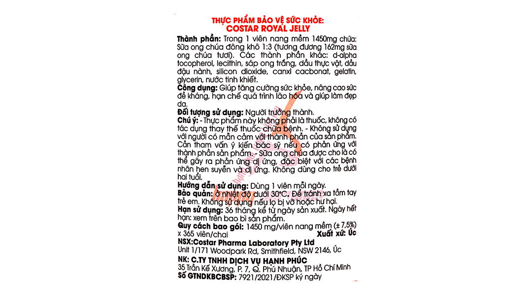 Sữa ong chúa Costar Royal Jelly giúp nâng cao sức đề kháng, làm đẹp da lọ 365 viên