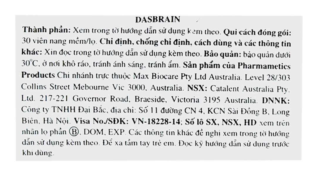 Bảo quản thuốc Dasbrain dưới 30°C, ở nơi khô ráo, tránh ánh sáng, tránh ẩm.