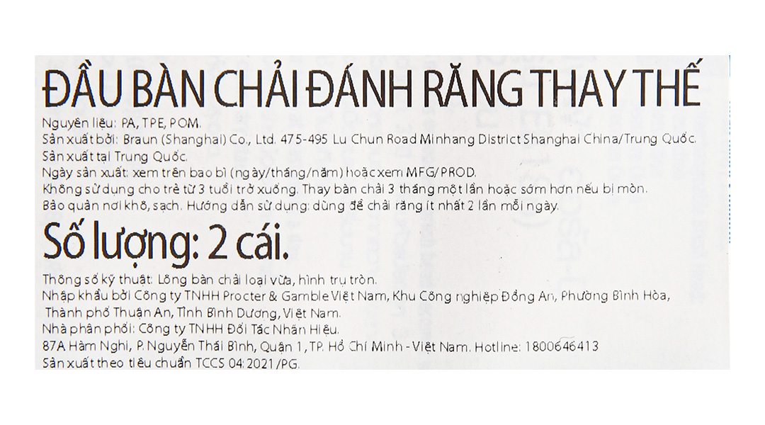 - Phần đầu bàn chải được dùng để gắn vào thân bàn chải điện Oral-B. Sau khi thay thế đầu bàn chải, sử dụng bàn chải điện như chu trình bình thường.