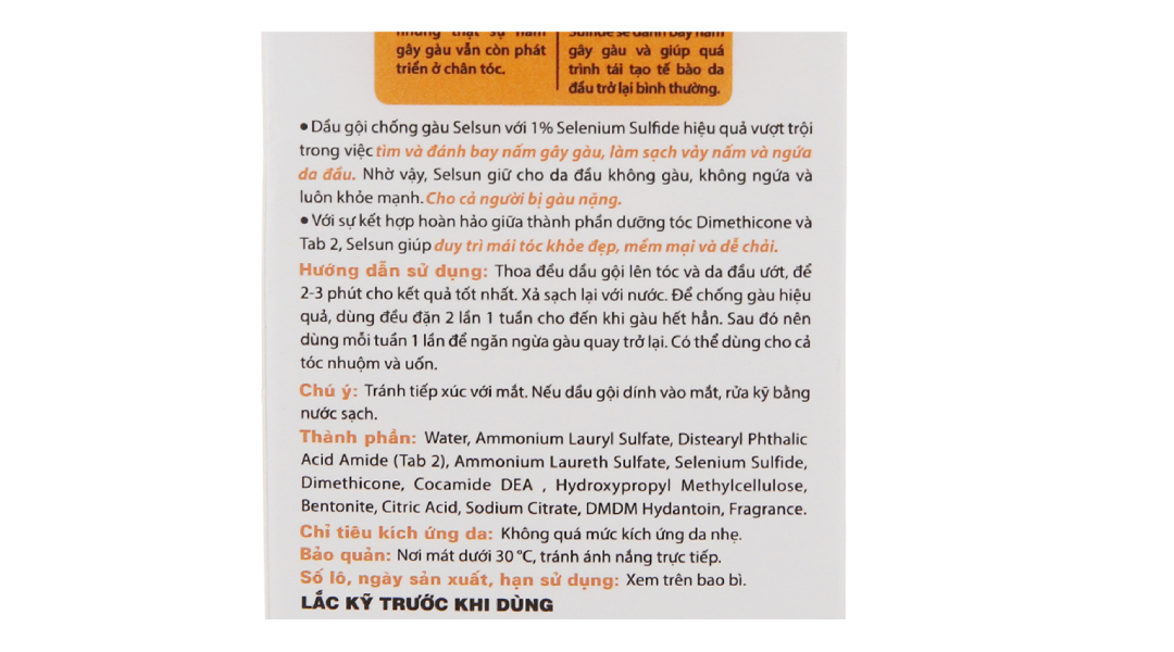 Công dụngGiúp làm sạch gàu, hết ngứa