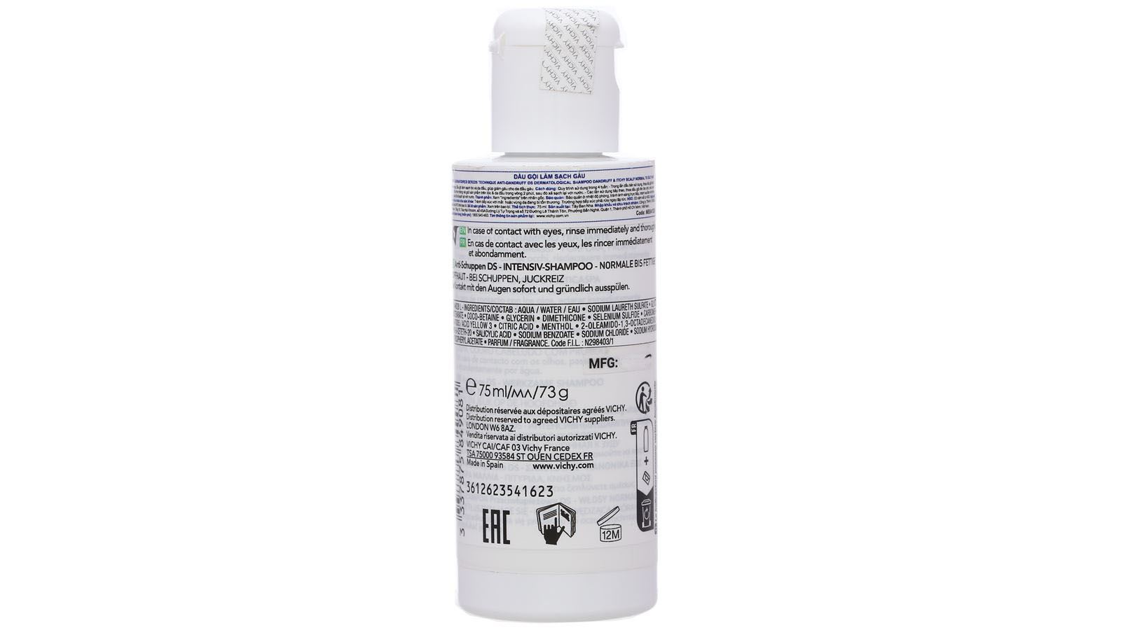 Dầu gội Vichy với công nghệ đột phá Microbiome & thành phần selenium DS giúp làm sạch gàu và giảm ngứa da đầu.