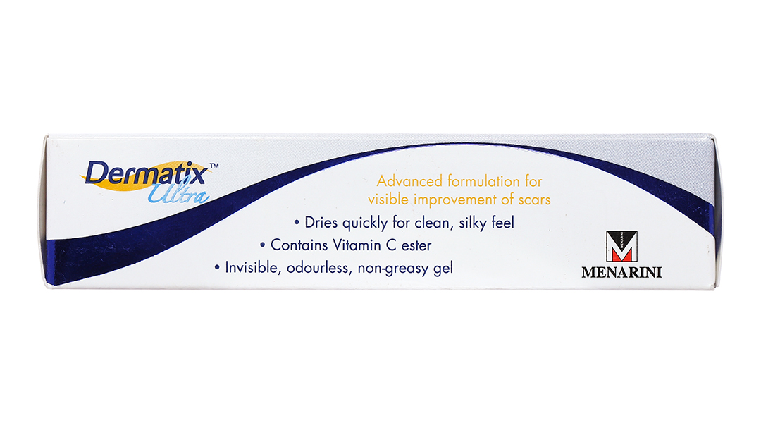 - Dermatix Ultra Gel có chứa ester của vitamin C, đây là tiền chất của vitamin C nên ổn định hơn, thẩm thấu sâu hơn vitamin C nên có tác dụng tốt hơn và giúp làm mờ sẹo hiệu quả.