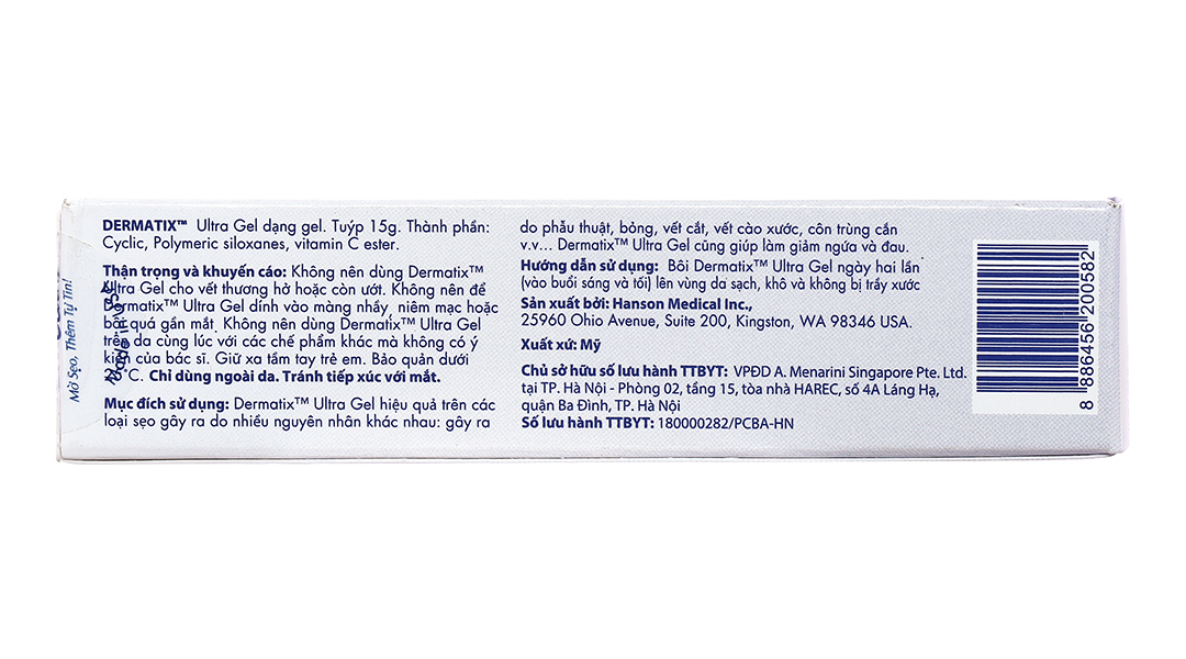 - Gel ngừa sẹo Dermatix Ultra được sản xuất với công nghệ đột phá silicone gel đi kèm cyclopentasilox-ane (CPX) giúp làm phẳng và mờ sẹo, thẩm thấu nhanh, không cần mát xa, không nhờn dính và có thể dùng chung với mỹ phẩm.