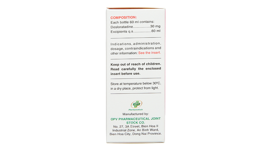 Desloratadin là chất đối kháng với histamin có chọn lọc ở thụ thể H1 ngoại biên, tác dụng kéo dài, không có tác dụng an thần.Sau khi uống, desloratadin phong bế chọn lọc các thụ thể histamin H1 ở ngoại biên, vì thuốc này không thấm được vào thần kinh trung ương.