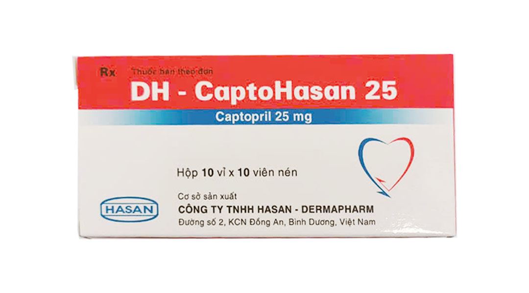 – Thận trọng khi sử dụngSuy giảm chức năng thận, thẩm tách máu, bị mất nước hoặc điều trị bằng thuốc lợi tiểu mạnh: nguy cơ hạ huyết áp nặng. Thuốc lợi tiểu tăng Kali huyết hay các muối Kali (do Captopril có tác dụng giữ Kali). Phẫu thuật hay gây mê bằng thuốc có tác dụng hạ huyết áp có thể dẫn đến cơn hạ huyết áp kịch phát do Captopril gây giải phóng Renin thứ phát. Nguy cơ tăng mạnh phản ứng phản vệ khi sử dụng đồng thời các thuốc ức chế men chuyển. – Phụ nữ có thai và cho con búCaptopril có thể gây tổn thương cho thai nhi và trẻ sơ sinh khi sử dụng thuốc trong 3 tháng giữa và 3 tháng cuối của thai kỳ như: hạ huyết áp, giảm sản sọ sơ sinh, suy thận hồi phục hay không hồi phục và tử vong. Phải ngưng sử dụng Captopril càng sớm càng tốt sau khi phát hiện có thai. Captopril bài tiết vào sữa mẹ, gây nhiều tác dụng có hại cho trẻ bú sữa mẹ. Không dùng cho phụ nữ có thai và cho con bú. – Khả năng lái xe và vận hành máy mócCần thận trọng khi dùng thuốc cho những người lái tàu, xe, vận hành máy móc, thiết bị, vì thuốc có thể gây hoa mắt, chóng mặt đối với một số người. – Tương tác thuốcKhông nên sử dụng đồng thời Captopril với các thuốc gây giữ Kali huyết như Cyclosporin hay thuốc lợi tiểu. Với Lithium: Captopril có thể làm tăng nồng độ Lithium huyết dẫn đến nhiễm độc Lithium. Các thuốc giãn phế quản kiểu giao cảm, thuốc kháng viêm non-steroid (NSAID) có thể làm giảm tác dụng hạ huyết áp của Captopril. Sử dụng Captopril đồng thời với các thuốc lợi tiểu có thể gây tác dụng hiệp đồng hạ huyết áp. |