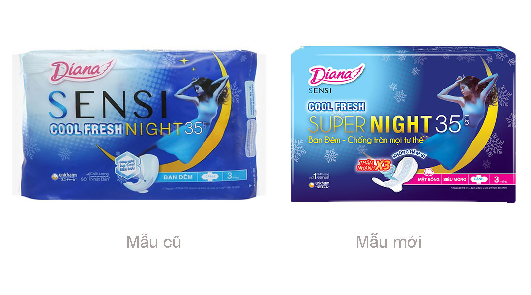 Băng vệ sinh ban đêm Diana Cool Fresh siêu thấm có cánh 35cm gói 3 miếng