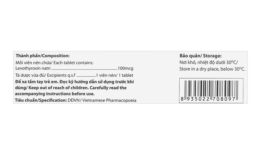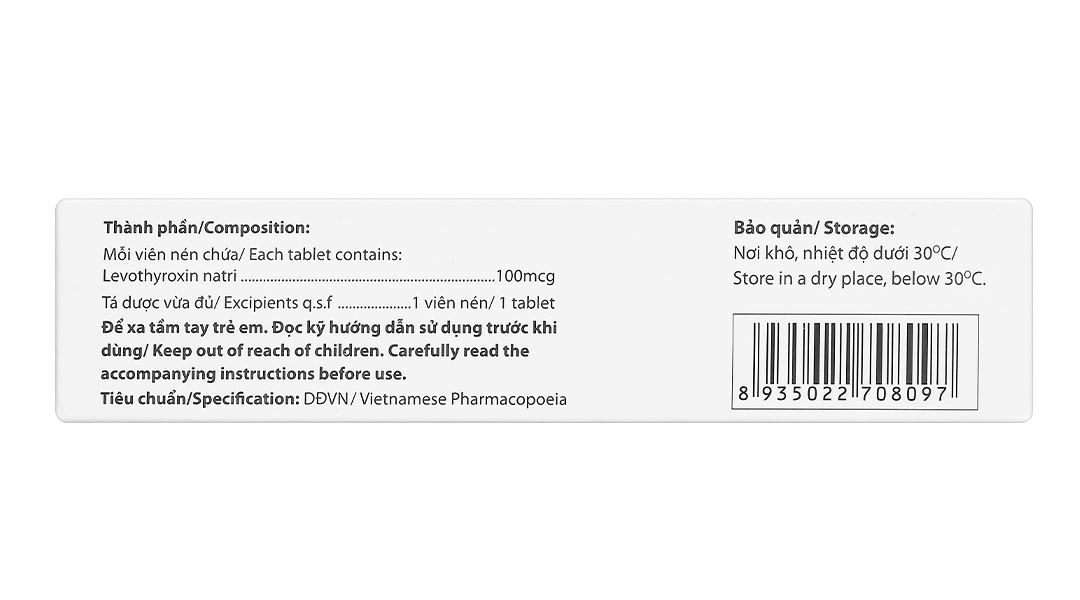 - Thành phần dược chất: Levothyroxin natri 100 mcg.