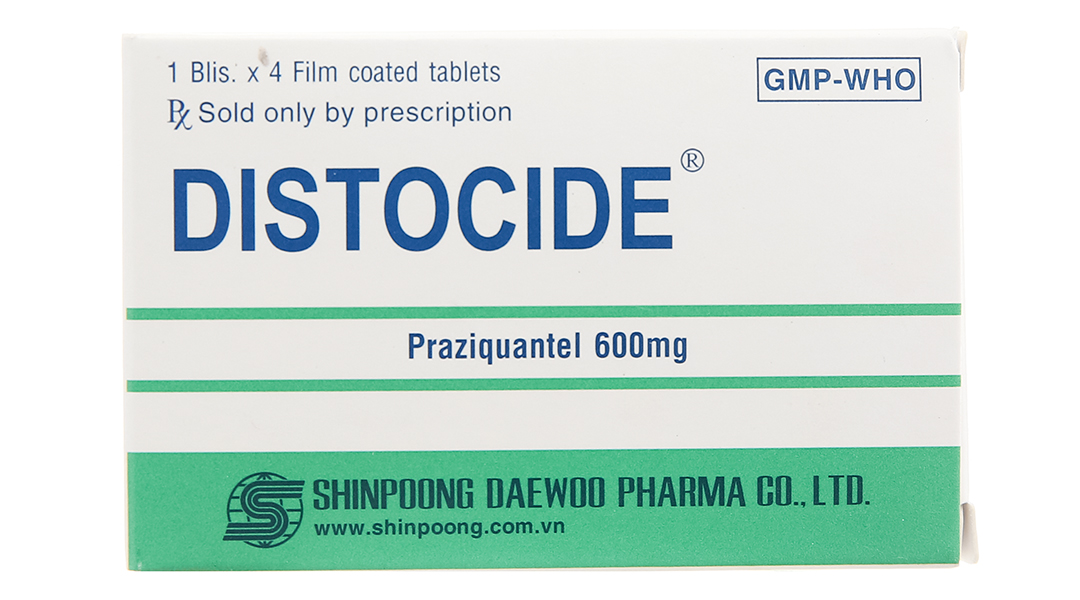 - Ở người: Thuốc được hấp thu nhanh khi uống, ngay cả khi uống trong bữa ăn, trên 80% liều dùng được hấp thu, đạt nồng độ đỉnh sau khi uống từ 1 – 3 giờ, gắn với protein huyết tương là 80 – 85%. Thuốc được phân bố trong toàn bộ cơ thể sán. Ở người, nồng độ thuốc trong dịch não tủy bằng 15 – 20% nồng độ trong huyết tương.
