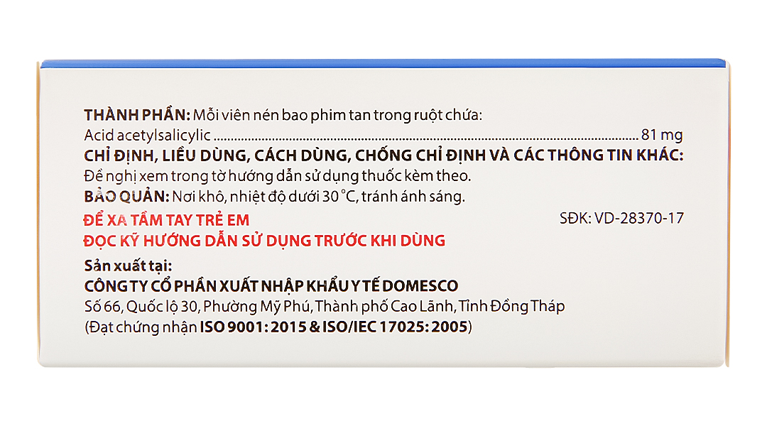 Thời kỳ cho con bú: Một lượng nhỏ salicylat và các chất chuyển hóa được bài tiết vào sữa mẹ. Do các tác dụng có hại trên trẻ nhỏ cho đến nay vẫn chưa được báo cáo nên việc sử dụng liều khuyến cáo ngắn hạn không yêu cầu ngừng việc cho bú. Trong trường hợp sử dụng dài hạn và/hoặc sử dụng liều cao hơn, nên ngừng việc cho bú lại. – Tương tác thuốcChống chỉ định kết hợp với Methotrexat (với liều >15 mg/tuần): Sự kết hợp methotrexat và acid acetylsalicylic có thể làm tăng độc tính trên máu của methotrexat do acid acetylsalicylic làm giảm độ thanh thải của methotrexat ở thận. Vì vậy, chống chỉ định sử dụng methotrexat (ở liều > 15 mg/tuần) đồng thời với Doaspin 81mg. Không khuyến cáo kết hợp với Thuốc tăng thải acid uric, như probenecid: Salicylat làm đảo ngược tác dụng của probenecid nên cần tránh kết hợp các thuốc này.