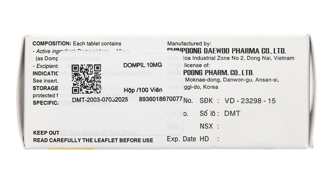 – Nên uống DOMPIL trước bữa ăn (15 – 30 phút). Nếu uống sau bữa ăn, thuốc có thể bị chậm hấp thu.