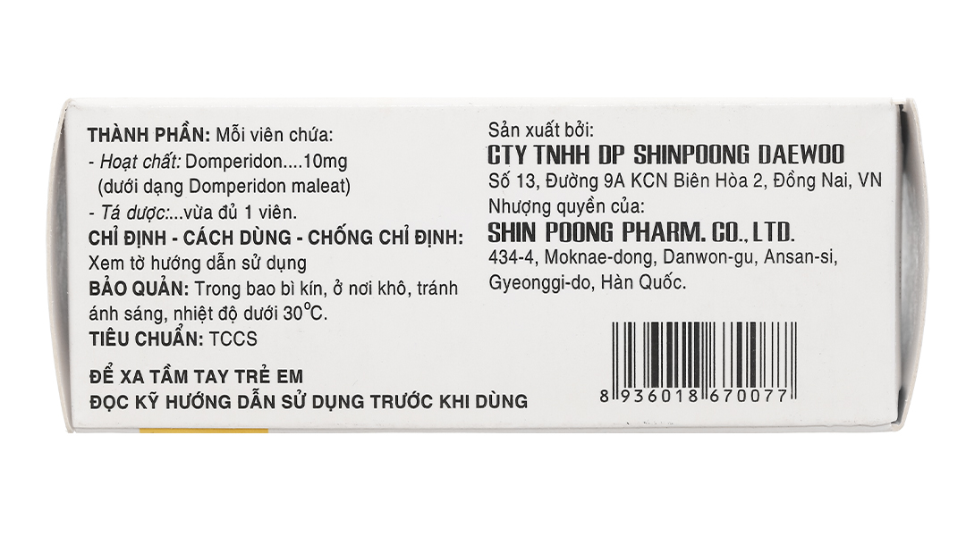 – Hoạt chất: Domperidon 10mg (dưới dạng Domperidon maleat).