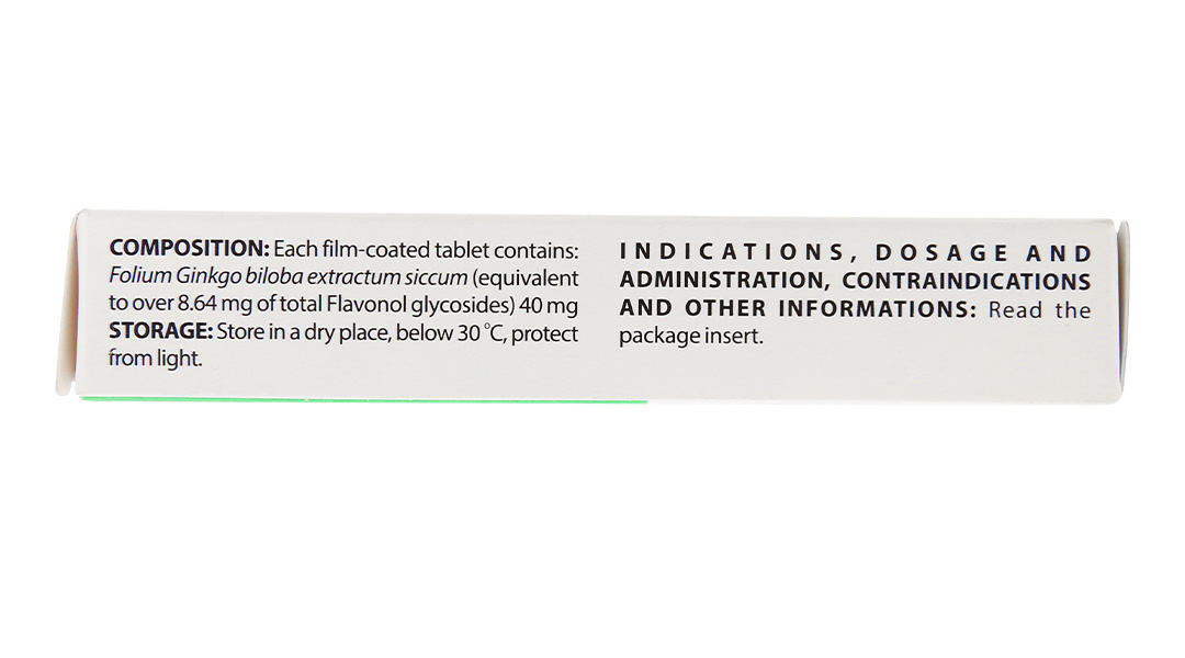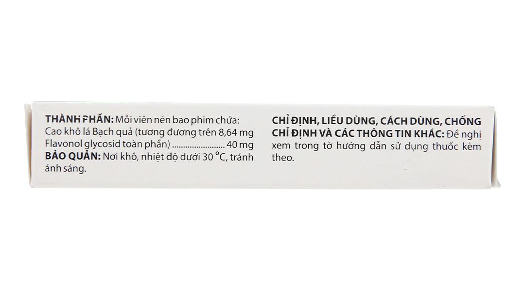 - Cao khô lá Bạch quả (tương đương trên 8,64mg Flavonol glycosid toàn phần) 40mg.