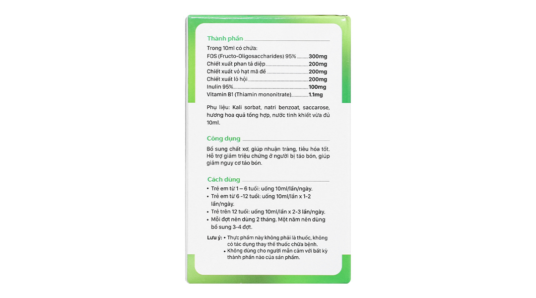 Trẻ em từ 1 đến 6 tuổi: uống 10ml/lần/ngày.