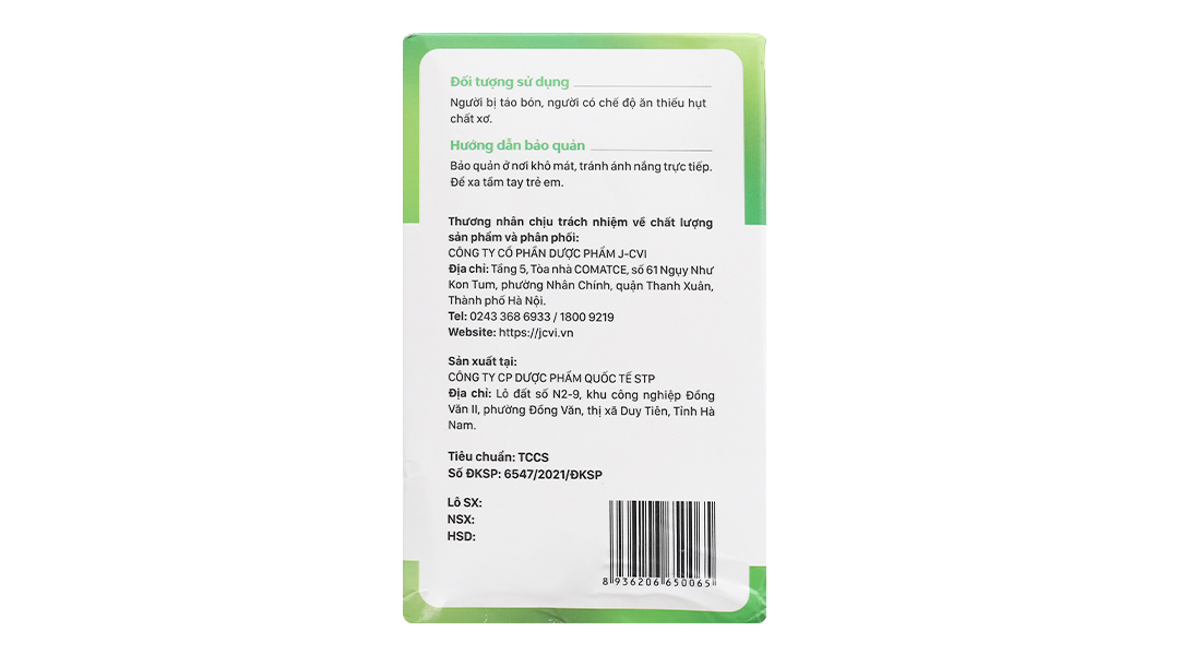 Trong 10ml Dung dịch chất xơ JV 20 ống có chứa: