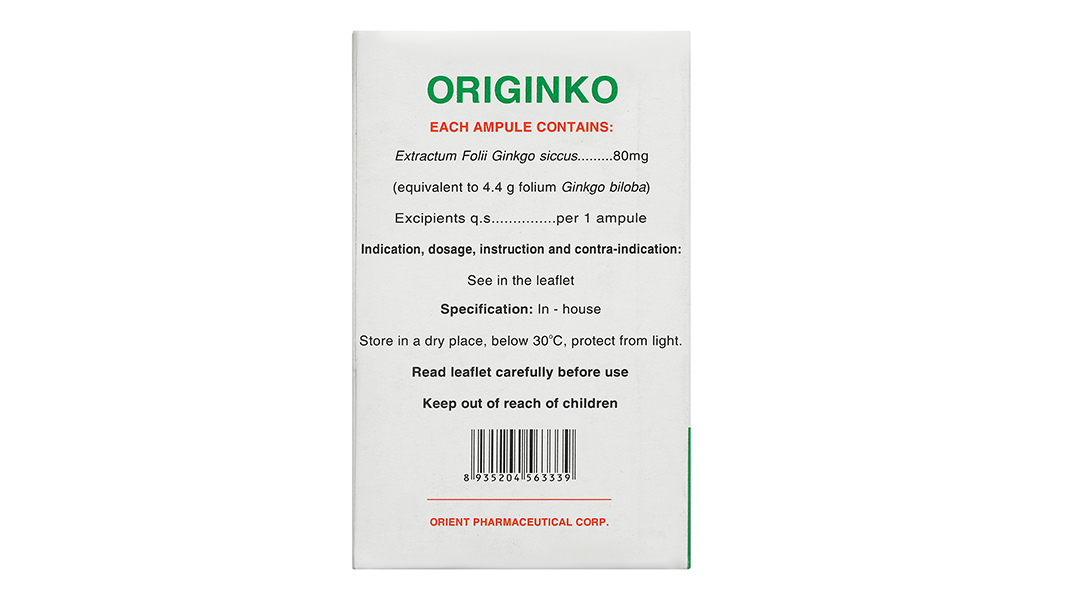 Dung dịch uống Originko trị suy giảm trí nhớ, suy tuần hoàn não (20 ống x 10ml)
