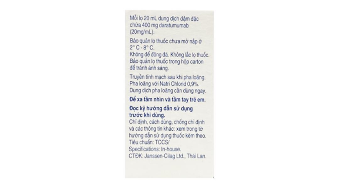 Hộp 1 lọ 20 mL chứa 400 mg Daratumumab..