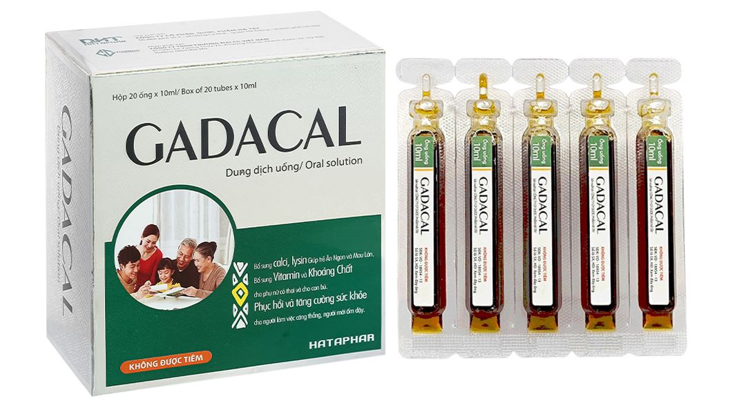 Dung dịch uống Gadacal bổ sung calci, lysin và các vitamin cho cơ thể (20 ống x 10ml)