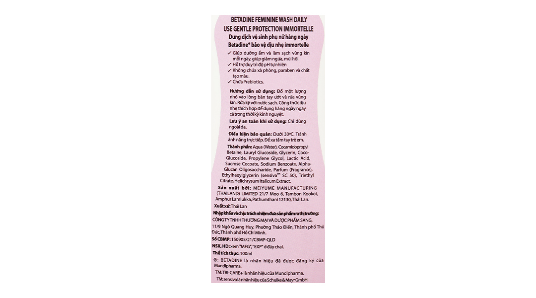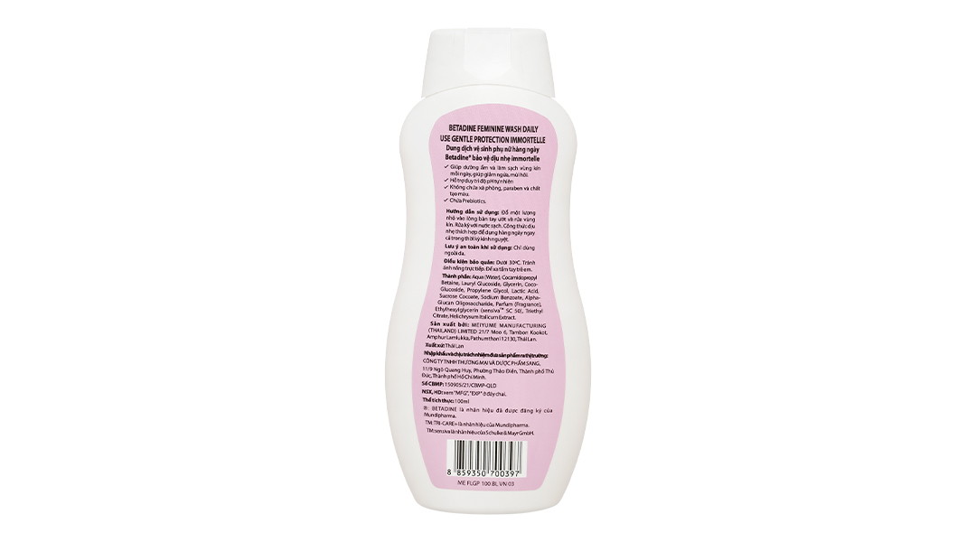 Mất cân bằng hệ vi sinh âm đạo gây ra các triệu chứng như ngứa, mùi hôi và nhiều huyết trắng. Với công thức Tri-Care kết hợp với Prebiotics, dung dịch vệ sinh phụ nữ Betadine Gentle chai 100ml giúp bảo vệ dịu nhẹ, nuôi dưỡng và cân bằng hệ vi sinh âm đạo để tăng cường khả năng tự nhiên, bảo vệ vùng nhạy cảm khỏi các triệu chứng khó chịu.