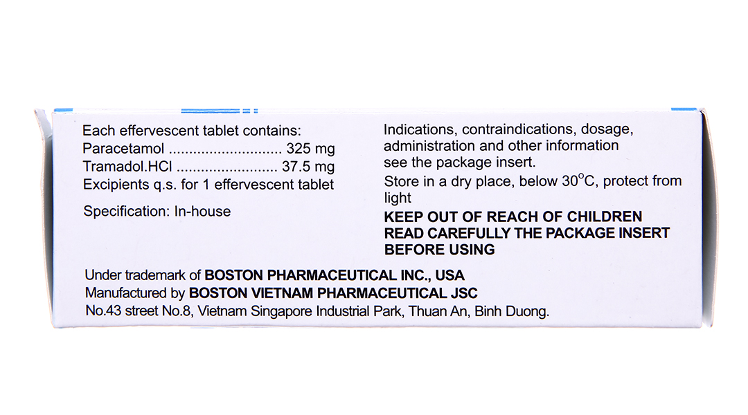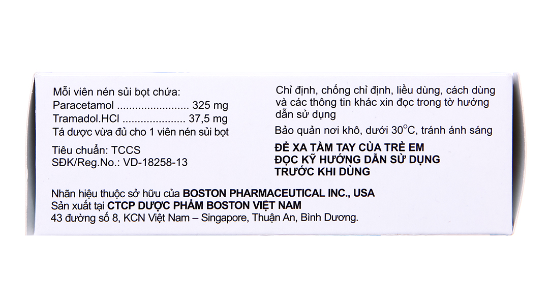 Hoạt chất: Paracetamol 325 mg, Tramadol hydroclorid 37,5 mg.