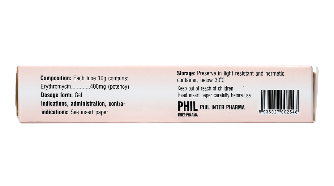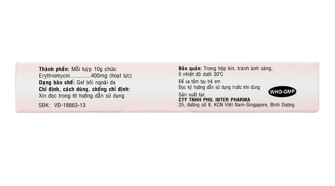 Tuýp 10g chứa: Erythromycin 400mg (hoạt lực).