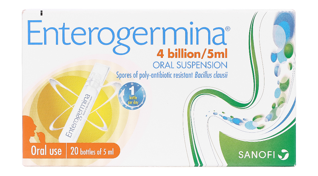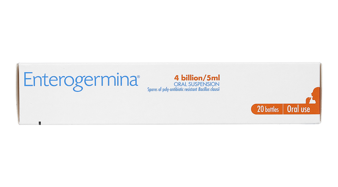 Enterogermina là thuốc uống dạng hỗn dịch có chứa các bào tử Bacillus clausii sinh sống tự nhiên trong ruột và không sinh bệnh. Khi uống các bào tử Bacillus clausii, nhờ vào khả năng đối kháng mạnh với các tác nhân hóa học và vật lý, thuốc đi qua hàng rào dịch acid dạ dày một cách nguyên vẹn, vào ống tiêu hóa và chuyển thành các tế bào sinh dưỡng có khả năng hoạt động chuyển hóa.
