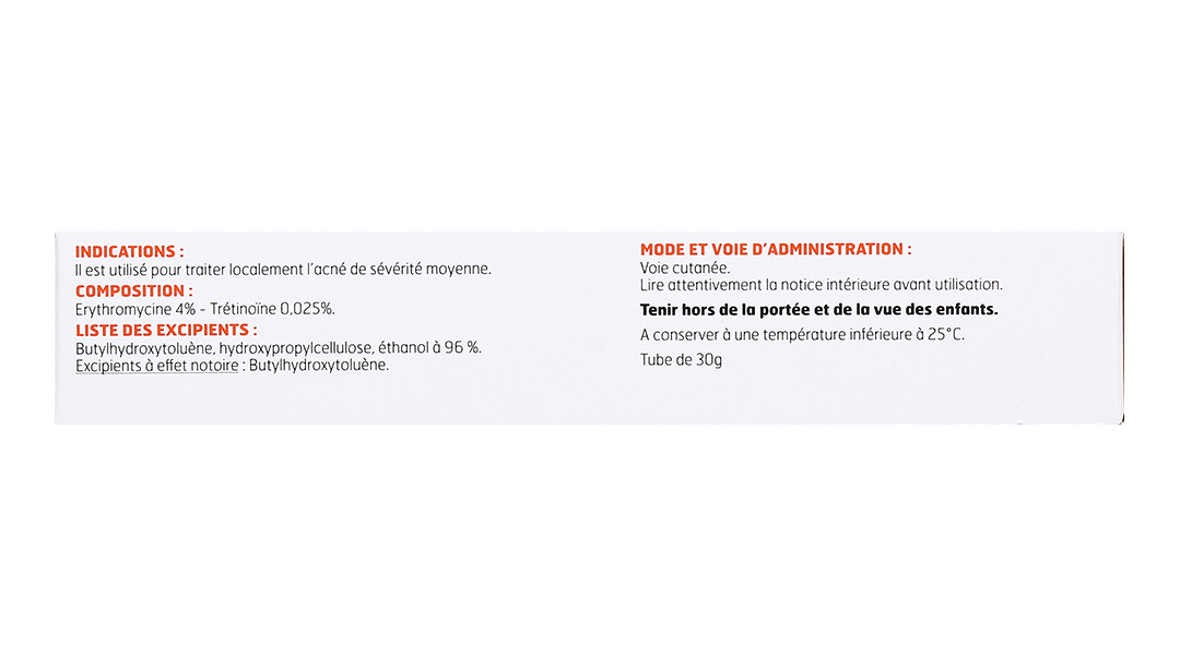 - Hoạt chất: Erythromycin 4,000g; Tretinoin 0,025g.