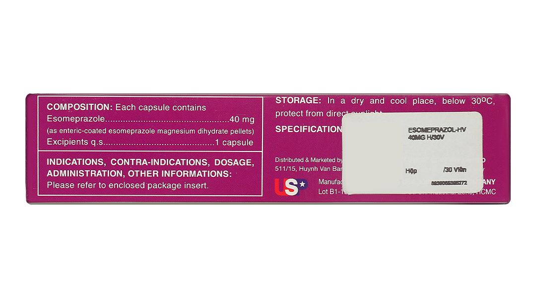 Loại thuốc: ESOMEPRAZOL 40-HV là thuốc kháng tiết acid dạ dày, thuộc nhóm thuốc chống loét dạ dày – ruột theo cơ chế ức chế bơm proton.