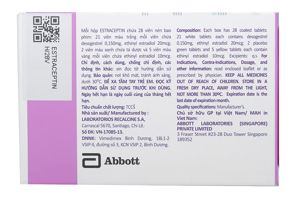 Estraceptin là một thuốc ngừa thai uống kết hợp gồm Desogestrel là một Progesteron tổng hợp và Ethinyl Estradiol là một Estrogen tổng hợp.